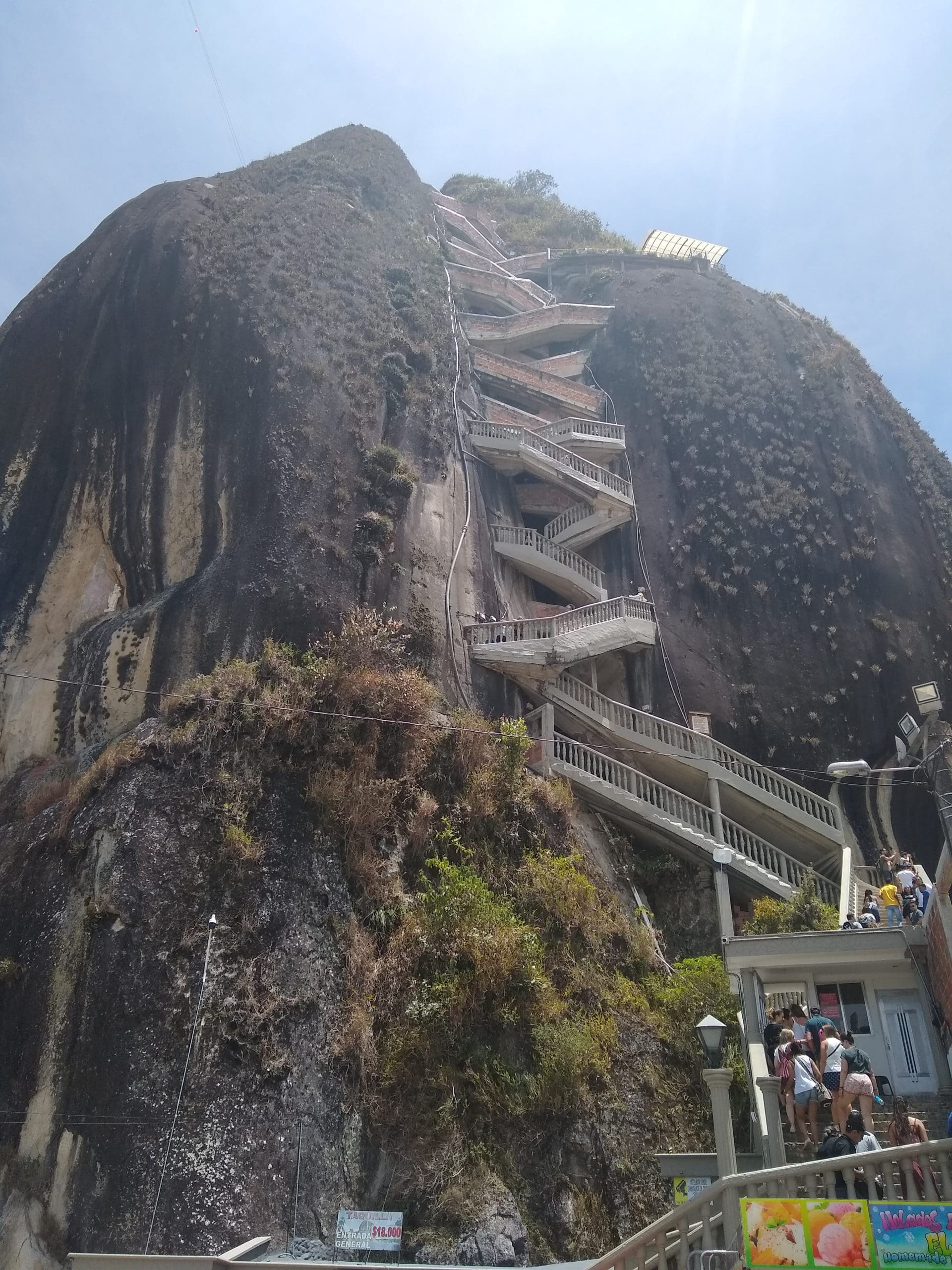 Situé dans le département d’Antioquia, à Guatapé même, le sommet de ce rocher est accessible par un escalier. L’autre façon d’atteindre son point culminant est d’emporter vos chaussons, baudrier et casque, et s’engager sur l’une de ses voies d’escalade.