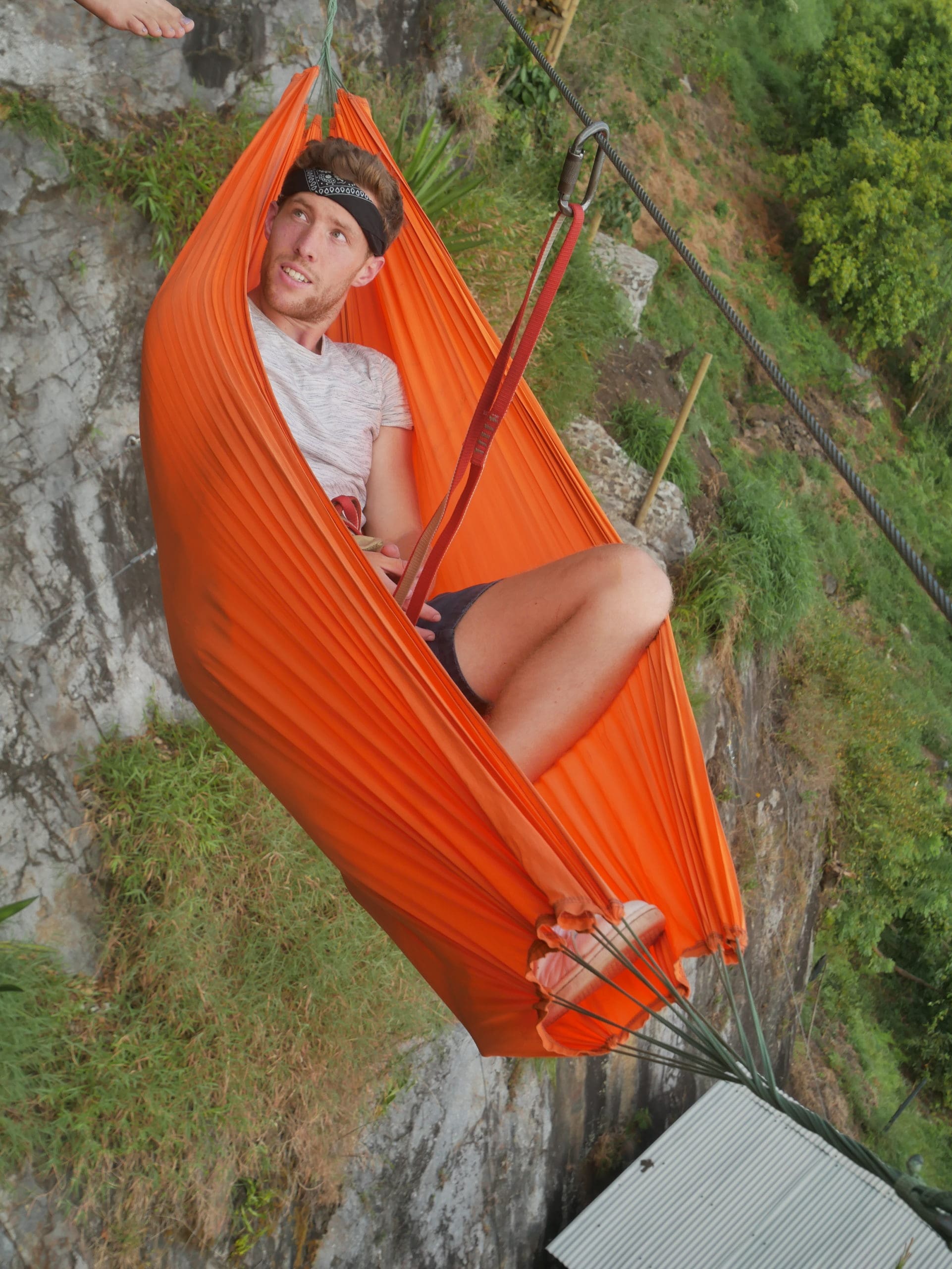 Pour les adeptes de la sieste en hamac, le site propose de la réaliser suspendu à un câble face au vide.