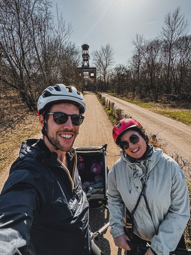 Pour cette balade à vélo, nous avons volontairement raccourci le parcours afin de créer une boucle de 18 km, parfaitement adaptée avec un chariot pour enfant, pour des cyclistes débutants, ou encore pour celles et ceux qui souhaitent combiner la sortie avec une autre activité. Dans notre cas, nous avons par exemple associé cette sortie Terhills à vélo à une demi-journée au centre outlet de Maasmechelen.