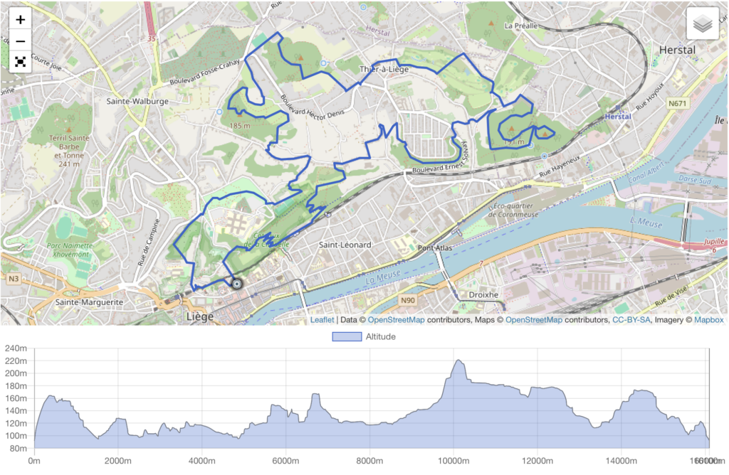 Les citadins Liégeois se disent souvent que le Trail n’est pas fait pour eux du fait de leur localisation. Pourtant, faire du Trail à Liège est tout à fait possible. Certes la ville ne sera jamais très loin de vous, mais j’ai à vous proposer une trace de Trail à Liège où la nature se joindra à votre sortie dénivelé. En outre, la trace vous emmène dans de petits coins insolites autour de la ville de Liège. Des points de vue sur la ville, des montées sèches de terrils, des ruelles pittoresques, des escaliers, etc… sont tant de choses que vous pourrez savourer et en baver au cours de votre sortie Trail à Liège. Sans nul doute que cette trace émerveillera aussi les Traileurs qui ont l’habitude d’un décor plus ardennais.